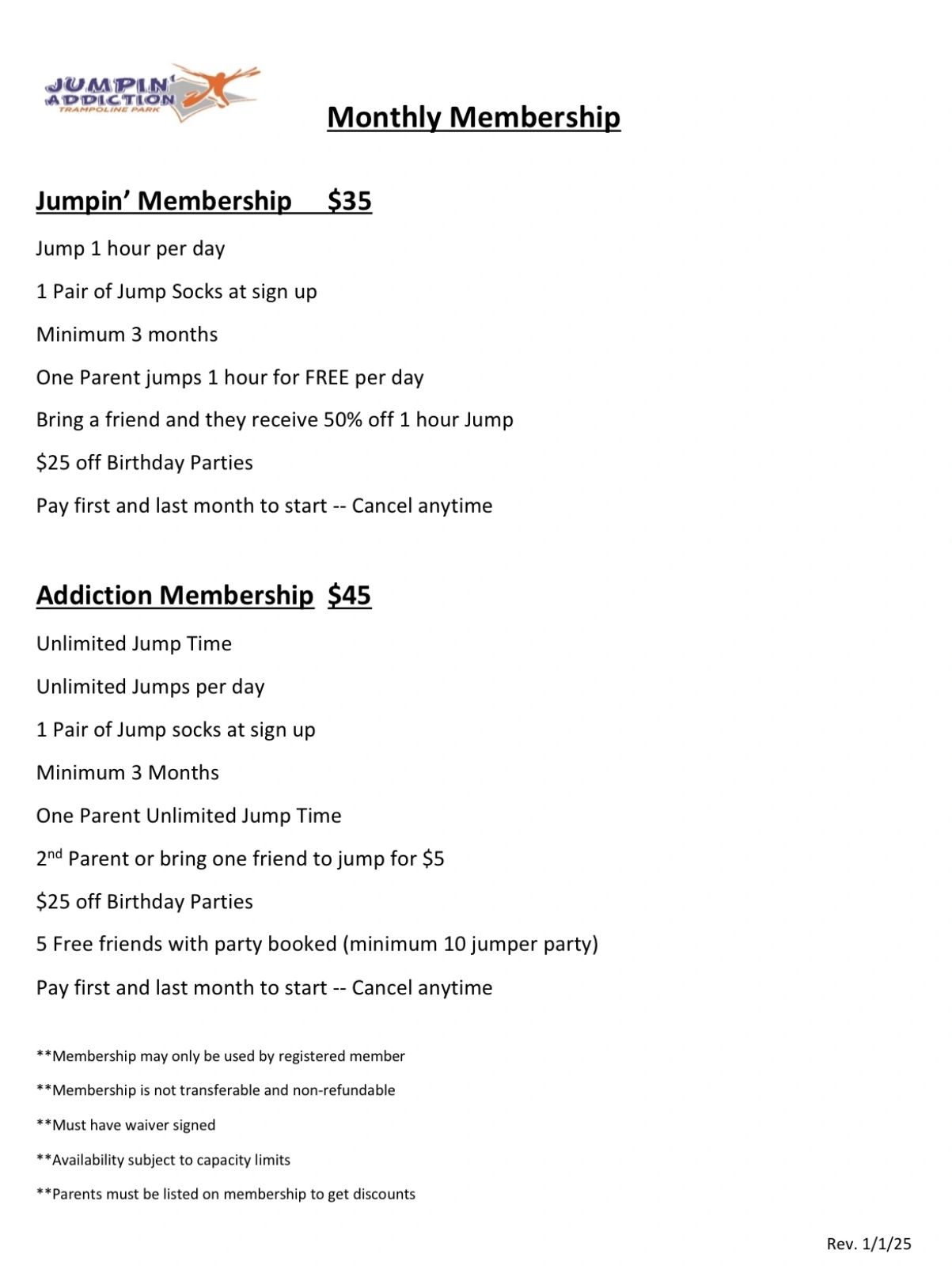 ATTENTION Frequent Jumpers!! We are now offering monthly memberships. See a team member at the park to opt in today!